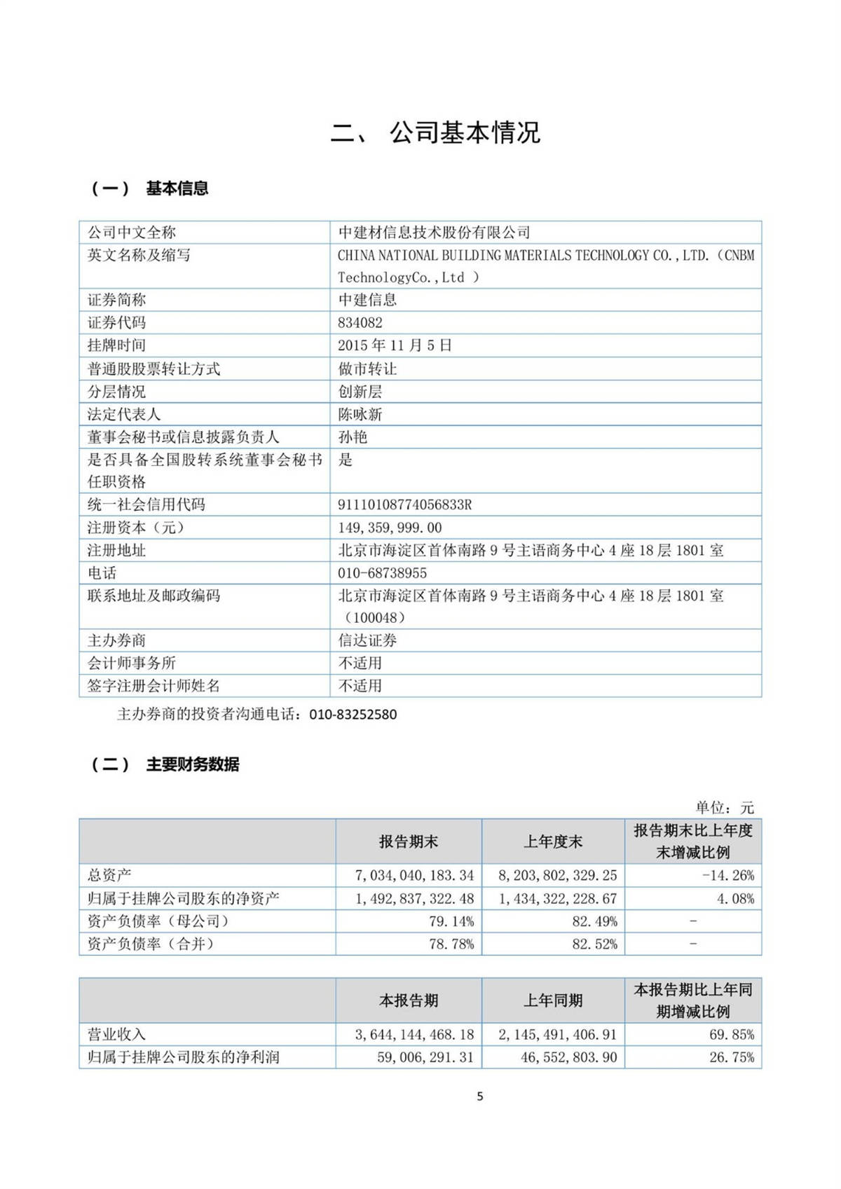 中建信息2019年第一季度報告