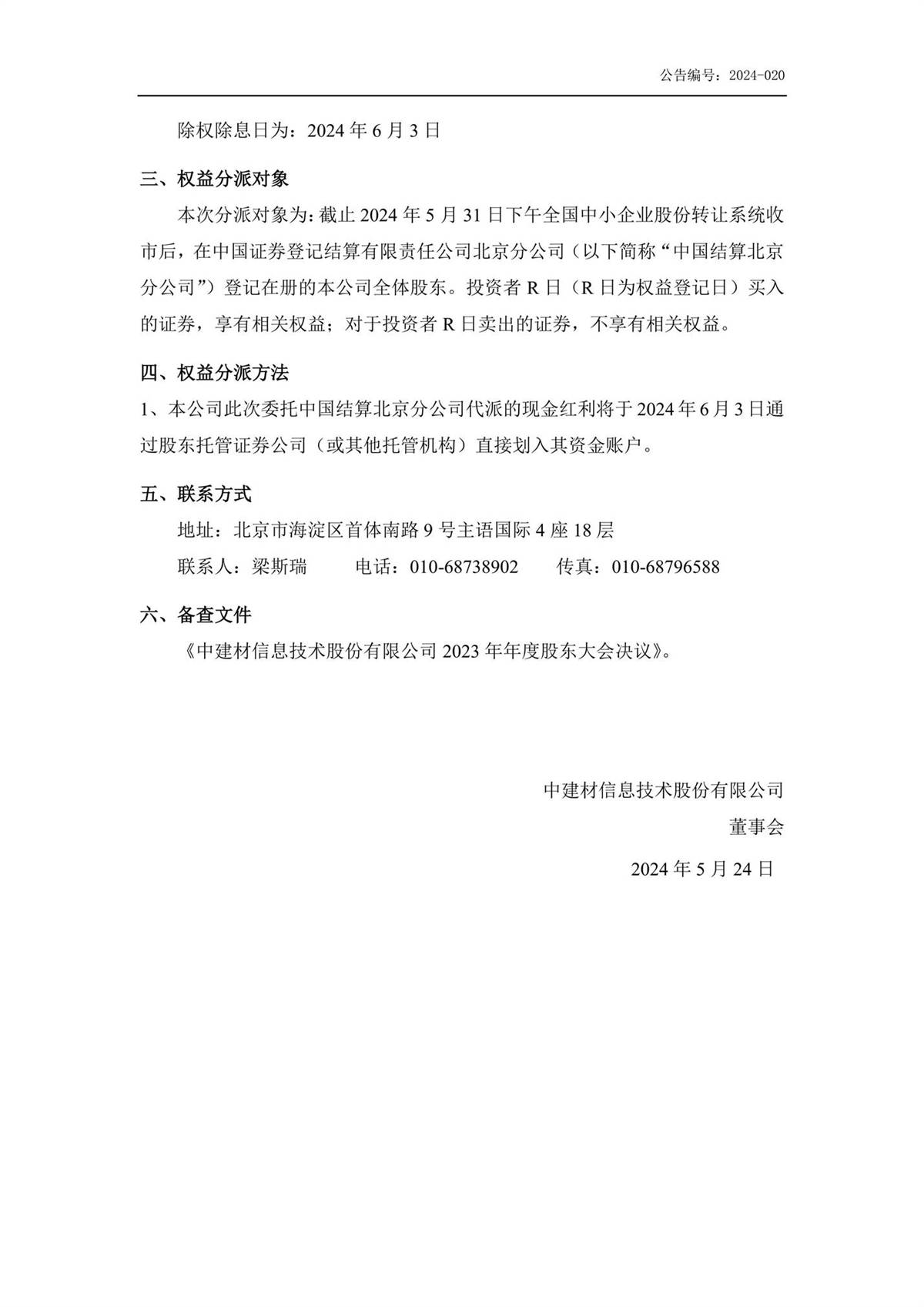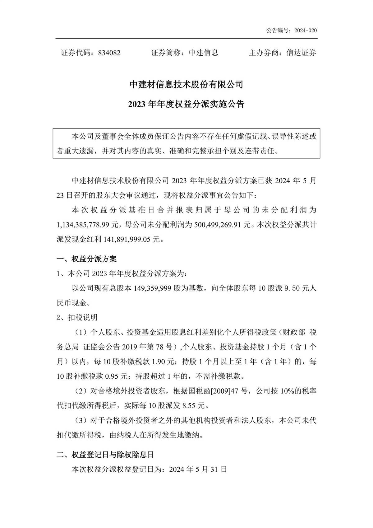 中建信息2023年年度權(quán)益分派實(shí)施公告
